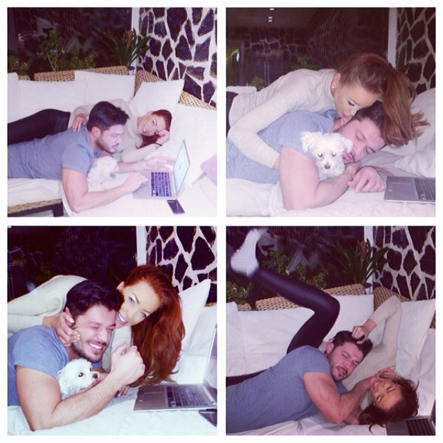 Vedeta nu avea somn noaptea trecută şi a postat pe contul de Instagram mai multe poze în care apare cu Victor în pat, cei doi se pupă şi se trag de păr, ca doi îndrăgostiţi. Alături de ei apare şi câinele Biancăi, care pare foarte fericit alături de Victor. "Trăieşti din amintiri?", i-a scris un fan roşcatei pe internet.