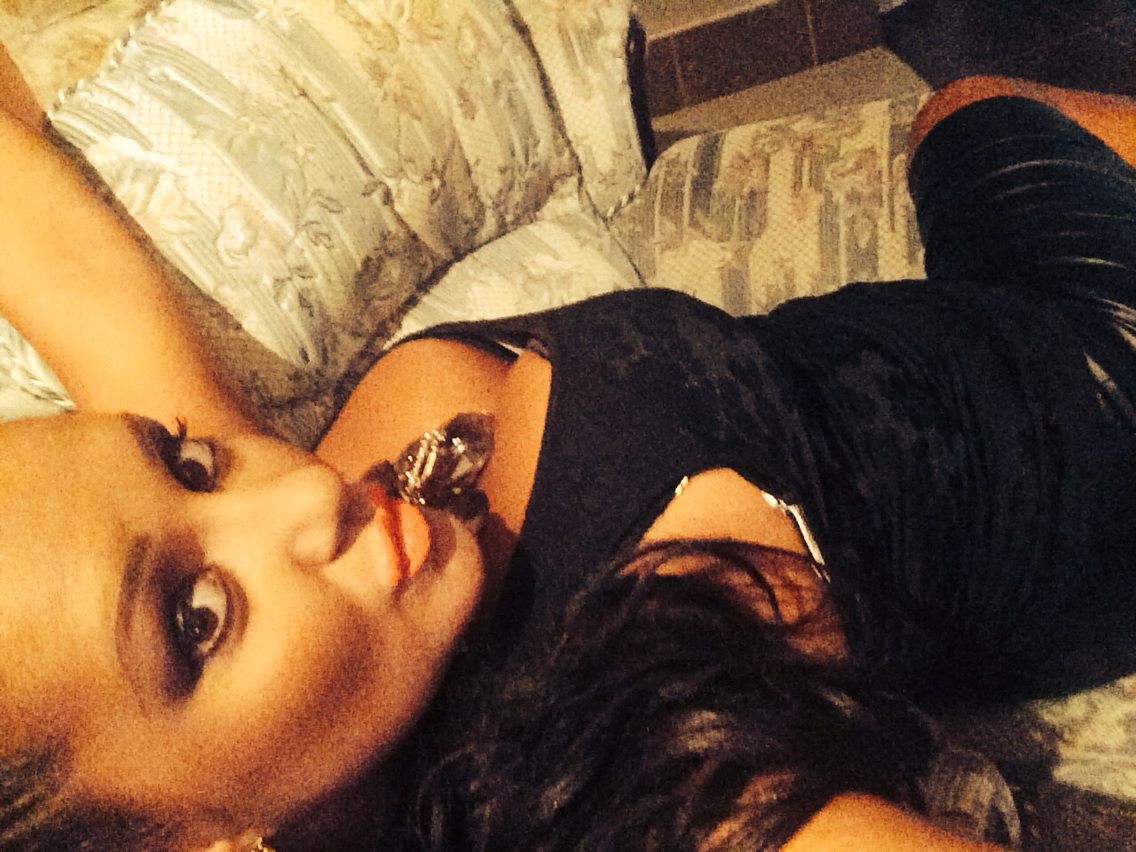 Vedeta nu pare deranjată de culoarea ciocolatie pe care o deţine, ba din contră, aceasta se pozează de câte ori are ocazia şi în diverse ipostaze ce îi scoate bronzul în evidenţă.