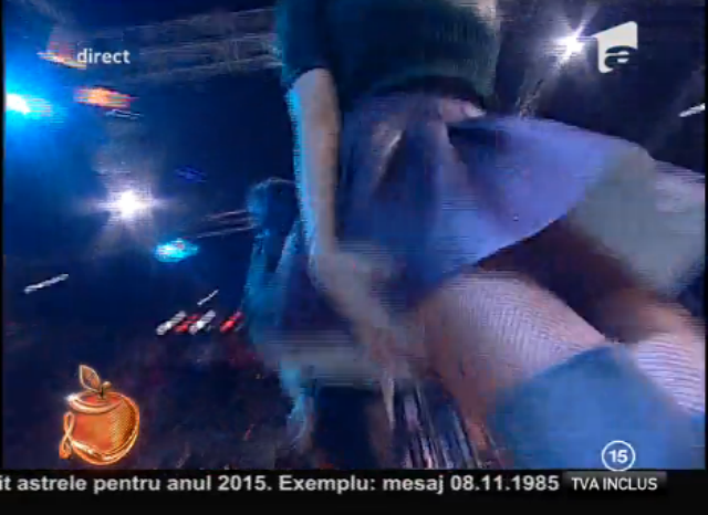 Alături de Cruduţa, blonda a demonstrat că încă ştie să danseze, iar, în timpul unei piruete, fusta prea scurtă a lăsat la vedere o priveliște de neuitat!