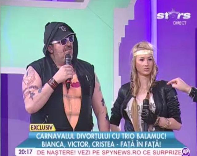Pe lângă Ovidiu Danci (iComedy), Andrei Duban şi George Papari, care au interpretat rolul protagoniştilor acestui scandal, vedete precum Rocsana Marcu, Răzvan Botezatu, Ana Mocanu, Loredana Chivu şi Serghei Mizil au interpretat diverse roluri pentru a anima atmosfera. Carnavalul divorţului dintre Bianca şi Victor a avut loc în emisiunea "Răi da' Buni", din această seară.