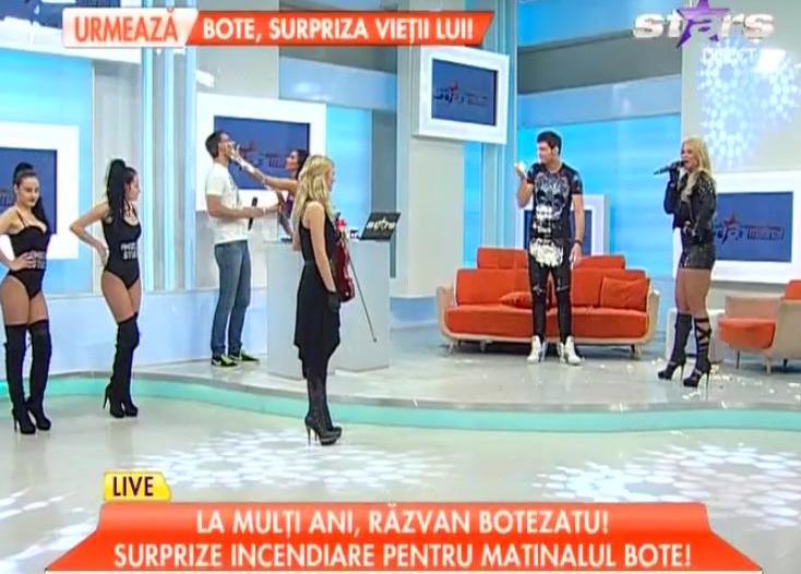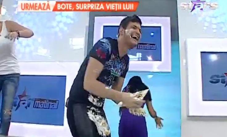 După ce aproape i-au dat lacrimile ascultând-o pe mama sa, Bote a avut parte de numeroase surprize din partea colegilor de platou. Toată lumea i-a cântat "La mulţi ani" simpaticului prezentator: colegii de la "Acces Direct", "Un show păcăros" şi "Antena Stars". Însă, în platou, lucrurile au scăpat de sub control, Raluca i-a pus tortul în braţe, iar lucrurile au scăpat de sub control.