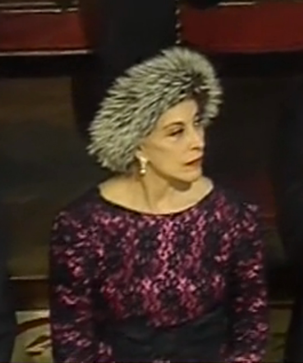 Doamna, o femeie fină, într-o rochie cu mânecă lungă adecvată momentului. Pălăria este binevenită date fiind evenimentul şi eticheta pe care o impunea.