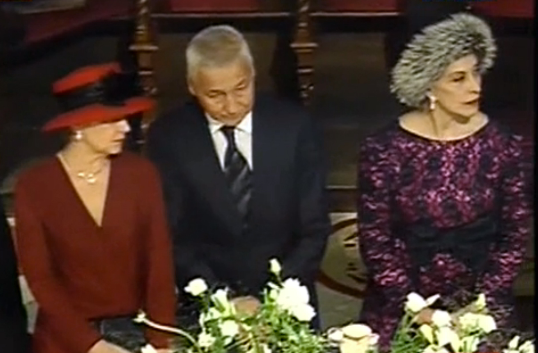 Soţul doamnei (dreapta) însă a ales un costum care îi vine bine, cu batistă şi un pantof frumos şi elegant.