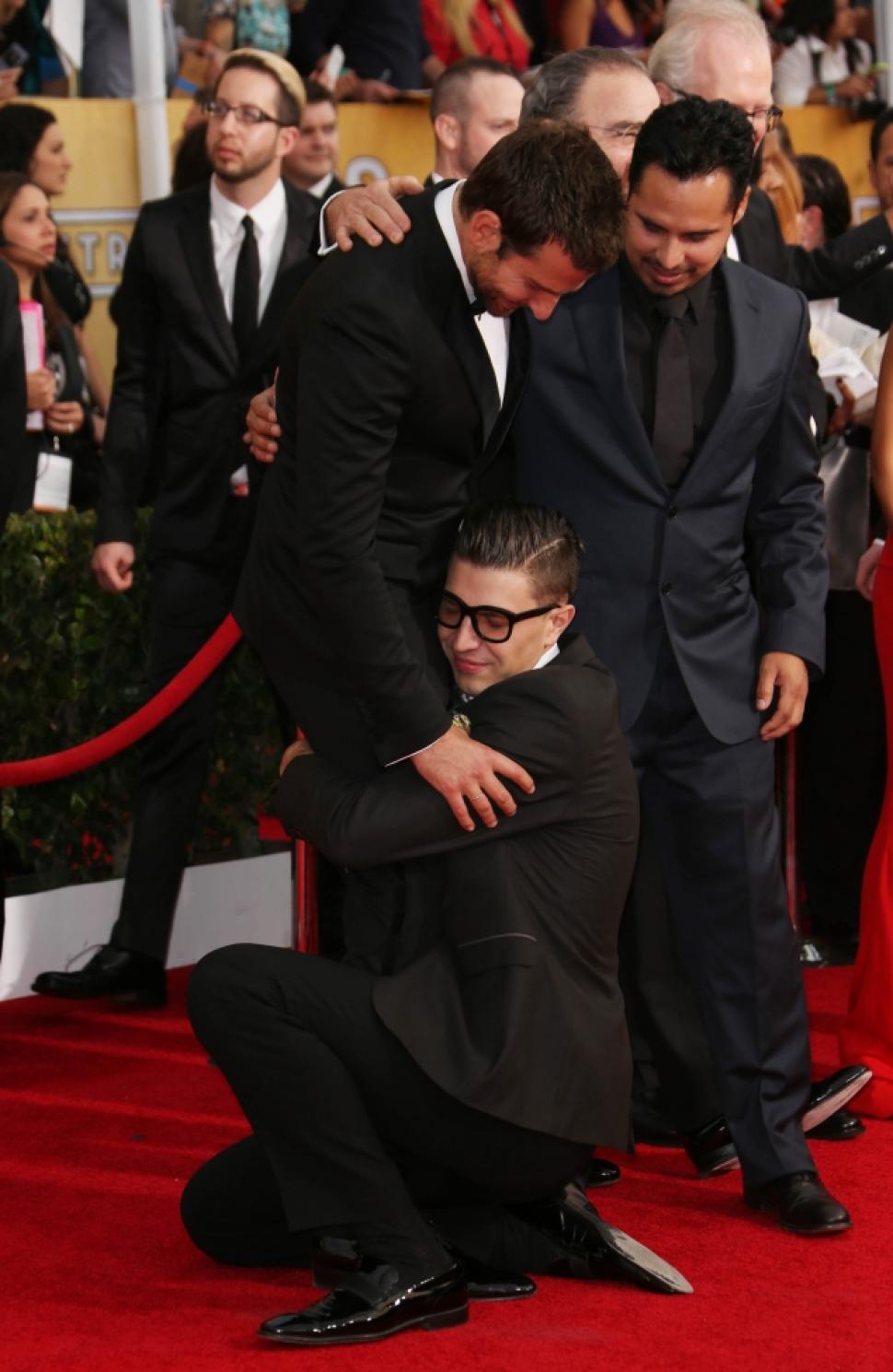 În trecut, el s-a pus în genunchi în faţa lui Leonardo DiCaprio şi Bradley Cooper şi le-a îmbrăţişat...zona intimă. Will Smith a fost şi el victima farsorului, atunci când s-a trezit sărutat, pe covorul roşu, de către ucrainean.