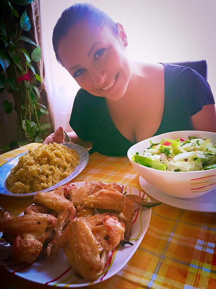 "Astăzi am gătit şi am primit 3 de "DA" de la cei mai importanţi chefi din viaţa mea. Am simţit că şi Evei i-a plăcut. Bonusul a venit de la Rona ( mi-a laudat orezul / ea fiind specialista. Sa aveţi o zi frumoasă! Vă pup", este mesajul care însoţeşte imaginea cu masa copioasă cu care se răsfaţă artista.