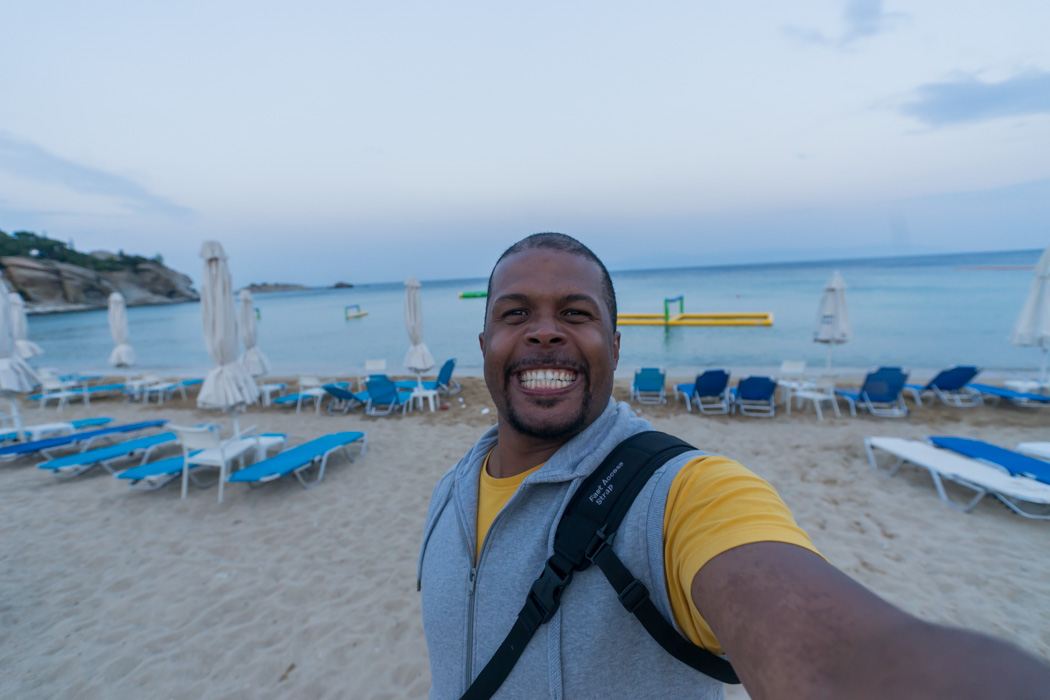 Încep să mă gândesc că s-a anunțat ploaie iar, că o să fie frig, că o să fie prea mult nămol, că parcă n-aș avea chef chiar de munte. Și virez…I-am trimis nevestei mele trei selfie-uri cu mine de pe drum.Da, Andreea știa c-am plecat până pe Valea Prahovei să mă plimb pe o forestieră… eu am ajuns pe o plajă. Din Grecia!În primă instanță mi s-a părut amuzant…