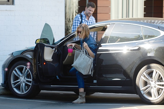 Actriţa în vârstă de doar 42 de ani a fost fotografiată în momentul în care ieşea din maşina personală, în apropierea unui studio de filmări. Ea a purtat o salopetă din denim, care nu i-a avatajat silueta absolut deloc, însă detaliul care a atras atenţia cel mai tare a fost părul ei.
