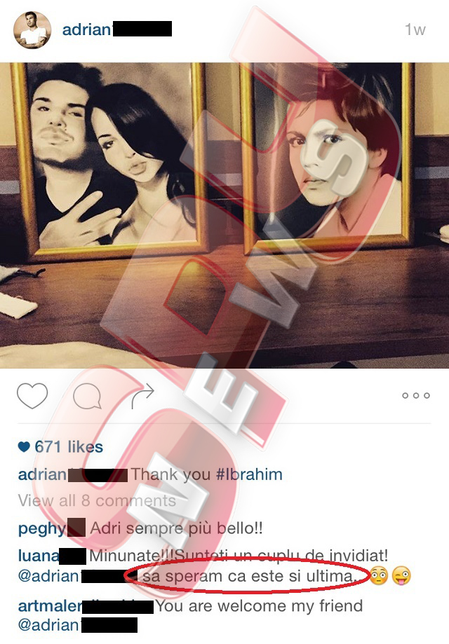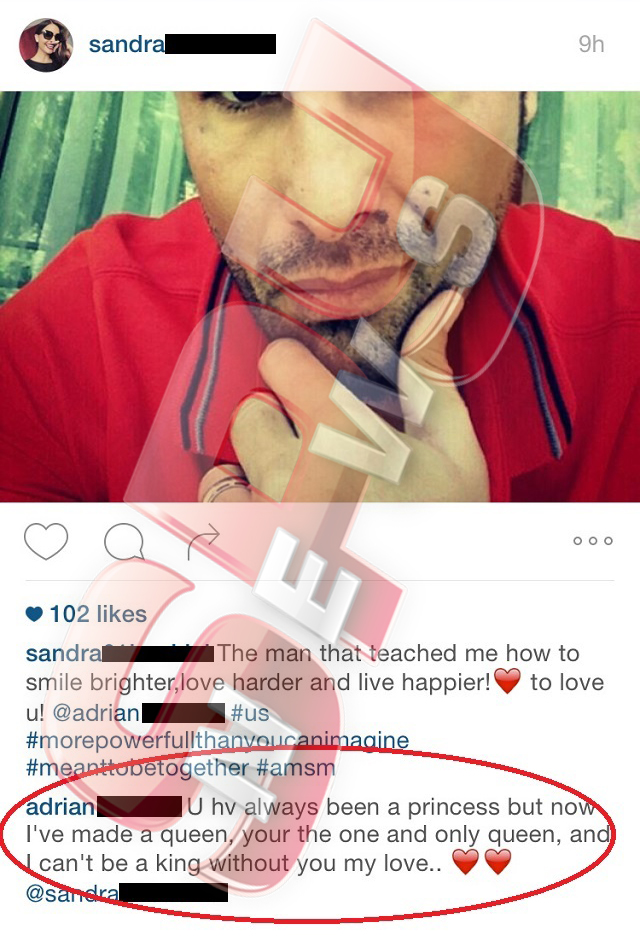 Toate aceste discuţii au avut loc între cei doi pe un site de socializare, unde cei apropiaţi i-au felicitat pentru relaţia pe care o au. Adrian Mutu nu a putut să nu le mulţumească, iar acesta a ales să facă acest lucru printr-o mărturisire: „Să sperăm că este şi ultima”, referindu-se bineînţeles la femeia din viaţa lui, şi anume Sandra, semn că „Briliantul” are planuri serioase cu focoasa brunetă.