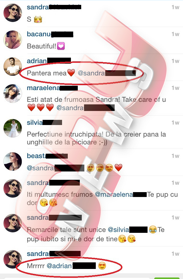Ca orice cuplu de îndrăgostiţi, Sandra şi Adrian folosesc tot felul de apelative, pe care şi le adresează unul altuia, pentru a-şi exprima mult mai simplu şi mai uşor ceea ce simt. Cu un trup de felină, „Briliantului” i-a fost foarte uşor să o alinte pe iubita lui, căreia îi spune „Pantera mea”. Răspunsulş Sandrei nu întârzie să apară, aceasta parcă provocându-l pe fotbalist: „Mrrr...”.