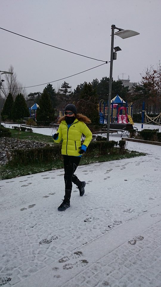 Astfel, proaspăta mămică a rămas fidelă programului ei de antrenamente şi nici măcar gerul şi zăpada de afară nu a abătut-o de la traseu.