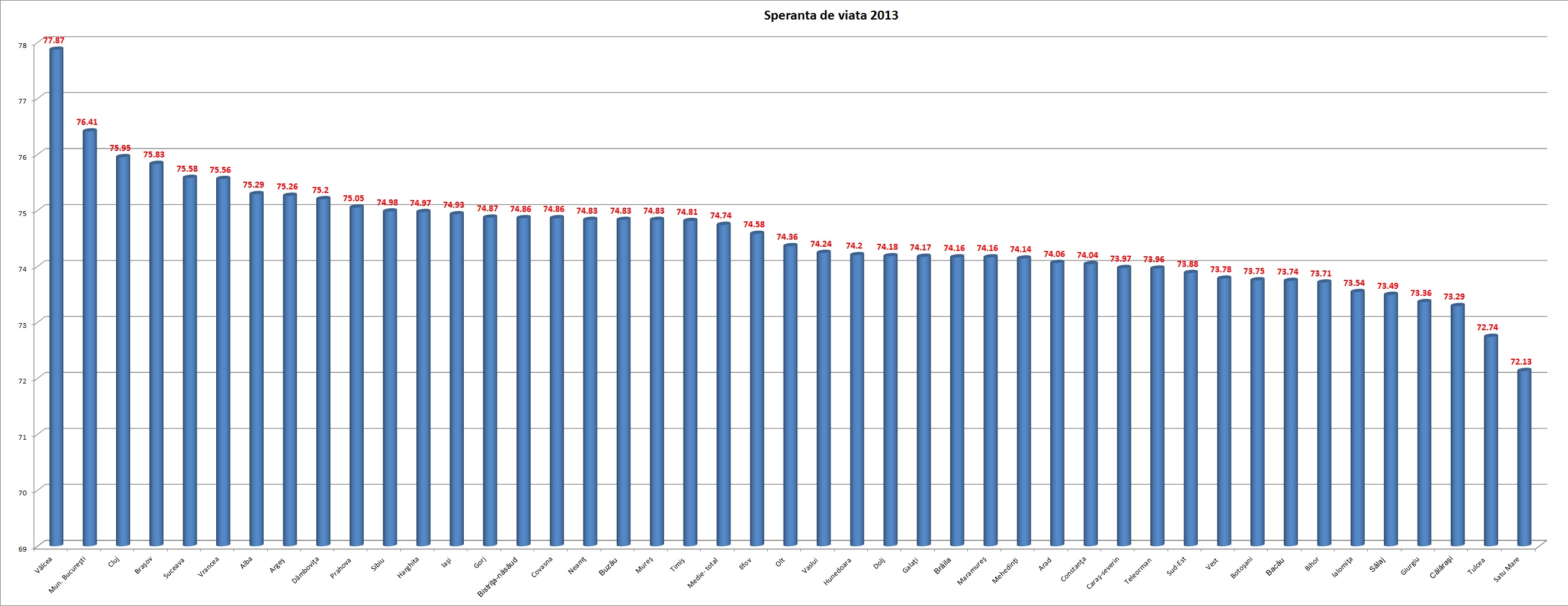 În urma cercetării s-a realizat un tabel grafic cu speranţa de viaţă pe fiecare judeţ (Click pe tabel)