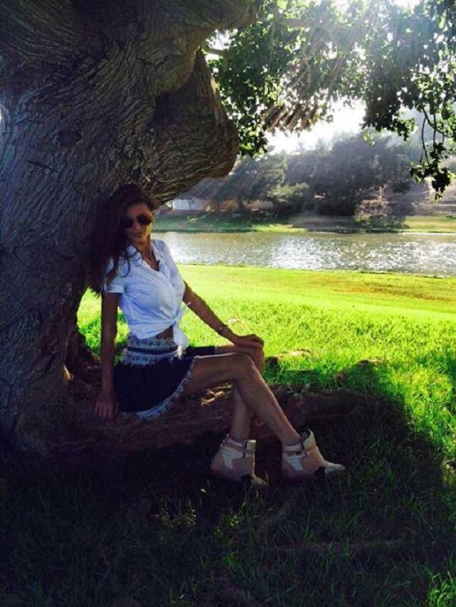 Focoasa brunetă a postat pe contul de Facebook o fotografie în care se relaxează în natură. Ramona Gabor s-a aşezat pe un copac, arătându-le prietenilor virtuali peisajul superb din spatele ei. Vedeta este îmbrăcată într-o fustă scurtă şi o cămaşă albă pe care şi-a legat-o la mijloc, lăsându-şi la vedere abdomenul. Ea este extrem de provocatoare, iubitul arab fiind mândru pentru că are o femeie atât de frumoasă alături. "Eu şi natura", a scris Ramona pe Internet.