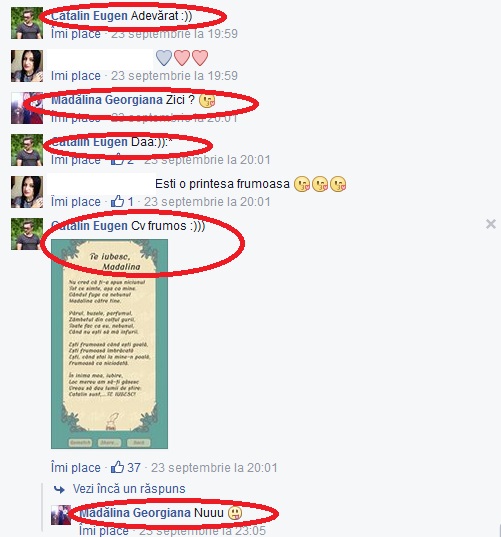 Drept răspuns Cătălin i-a dedicat o poezie de dragoste.