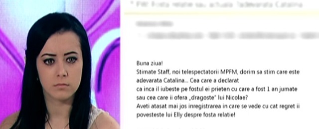 "Nu sufăr după fosta relaţie. Dacă sufeream, stăteam acasă, mai ales că dacă voiam puteam să o reiau. Am păstrat legătura cu fostul iubit. Ne-am despărţit de ceva timp. Stăteam în aceeaşi comună, aşa că îl vedeam destul de des. Nu am făcut cuplu pentru a rămâne în competiţie. Eu i-am spus asta cu Elly", a încercat să se apere Cătălina.