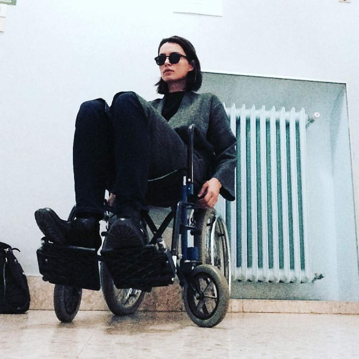 "Documentare. Pregătiri. Film", sunt primele cuvinte spuse de actriţă despre imaginea în care apare în scaun cu rotile.