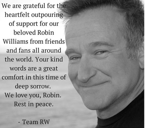 "Fanilor şi prietenilor de pretutindeni, vrem să vă mulţumim pentru sprijinul de care aţi dat dovadă la adresa preaiubitului nostru, Robin. Cuvintele voastre inimoase ne ajută să trecem cu mai multă uşurinţă peste aceste clipe dificile. Te iubim, Robin. Odihneşte-te în pace!", a fost mesajul emoţionat de pe pagina oficială a actorului, semnat cu "Echipa Robin Williams".