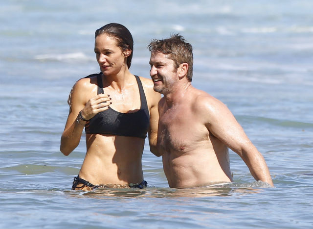 Când pasiunea este mare, uiţi cine te mai priveşte! Gerard Butler şi iubita lui Morgan Brown au făcut furori pe o plajă din Malibu, California.