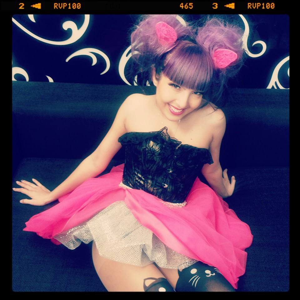 "Posesoarea" lui e nimeni alta decât Alyanna Lu, cântăreaţa excentrică ce-şi surprinde, zi de zi, fanii cu ţinutele sale funky. Frumoasa artistă a purtat, azi, o rochie fără bretele, cu partea de sus din piele şi cea de jos din voal roz foarte scurt. Sub rochie, i se disting nişte dresuri la fel de excentrice, cu pisici ca imprimeu. La întreaga ţinută, Alyanna a asortat două codiţe ciufulite şi tapate, prinse cu bentiţe - cum altfel?! - roz.