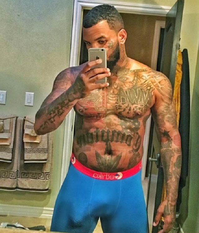 Dacă în cazul femeilor selfie-urile cu vedere la fund sunt la modă, nici bărbaţii nu sunt mai prejos. Plin de muşchi, tatuat pe tot corpul şi doar în boxeri, rapperul american The Game s-a fotografiat în oglindă cu penisul ieşindu-i în relief prin boxeri.