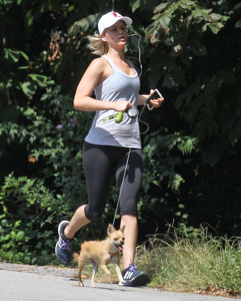Pe micile ecrane apare cu un chip de "ânger", dar când nu e aranjată, nu atrage privirile nimănui, fiindcă arată foarte comun. Jenniffer Lawrence a fost surprinsă ieri când a ieşit la o scurtă repriză de jogging, în oraşul Atlanta, din SUA. Ea era însoţită şi de câinele său şi mai nimeni n-a recunoscut-o fiindcă nu era machiată. Schimbarea, cel puţin în cazul ei, este radicală.