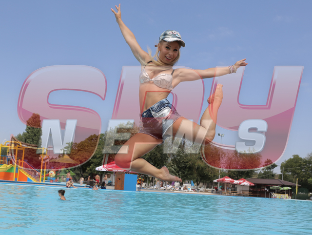 Și, fără să stea prea mult pe gânduri, artista a început să pozeze în ipostaze de infarct. Mai exact, Silvia a început, pe marginea piscinei, să arate tuturor ce mobilitate are. Iar când s-a ”plictisit” să înnebunească bărbații din preajmă, cântăreața a demosntrat că șite și să ”plutească”, ea pozând, în săritură, într-o ipostază pe care nu o pot repeta prea multe artiste de la noi din țară.