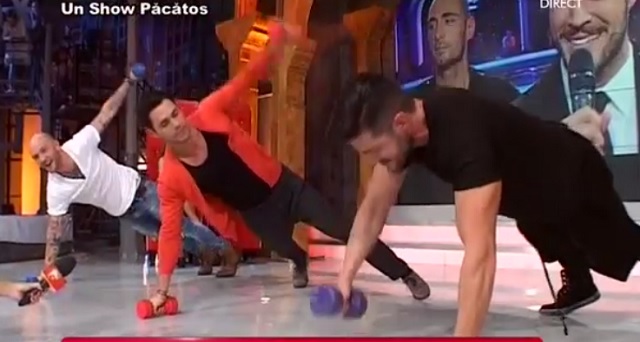 Cătălin Bordea a vrut să demonstreze că exerciţiile pe care Victor Slav şi Bogdan Vlădău le fac la sala de fitness sunt floare la ureche, însă a renunţat la "luptă" după doar câteva mişcări.