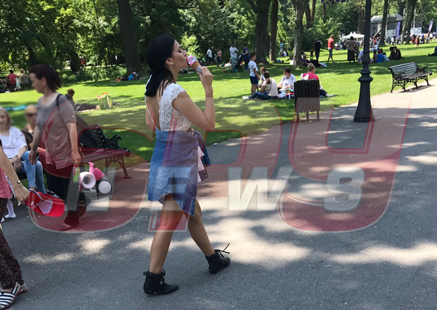 Ea, probabil, a și reușit să se răcorească. În schimb, cei din jurul ei au simțit, imediat, nevoia unui duș. Rece! Pentru că frumoasa brunetă părea să savureze cu o poftă deosebită înghețata favorită, în Parcul Mogoșoaia, daor că o făcea în așa fel încât cei din jur o priveau ca vrăjiți. Și, plimbându-se nestingherită pe acolo, Raluca părea să se ”joace” cu înghețata care mai, mai că nu i se topea în mână, dovedind că ea mănâncă ca o adevărată domnișoară.