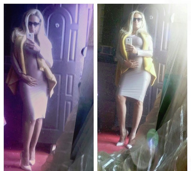 Fericita mireasă de acum câteva săptămâni e mândră să se afişeze pe facebook cu burtica pe care o are. Sânzi a postat pe facebook un colaj de două fotografii cu ea în oglindă mângâindu-şi burtica.