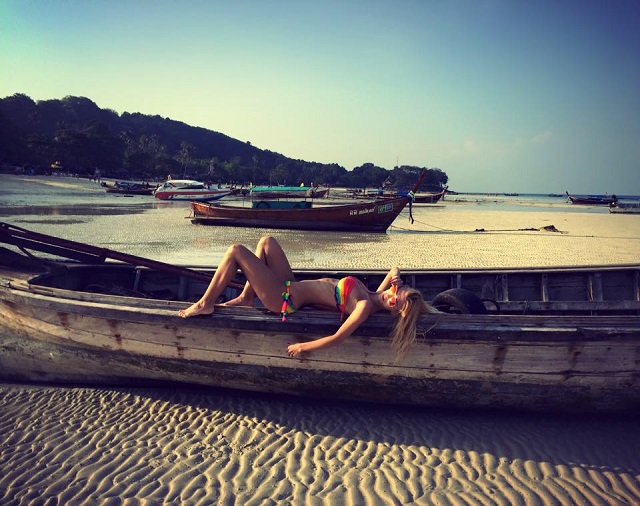 Andreea Bălan se distrează de minune alături de iubitul ei şi nu mai vrea să se mai întoarcă acasă. Andreea s-a pozat într-un costum de baie sexi, în timp ce stătea întinsă pe nisipul fierbinte şi pe o mică corabie de lemn, ceea ce i-a încântat teribil pe admiratorii ei virtuali.