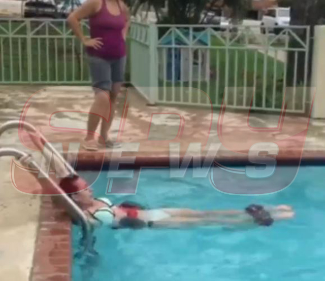 Cătălina Ponor face gimnastică de refacere într-o piscină din Caraibe
