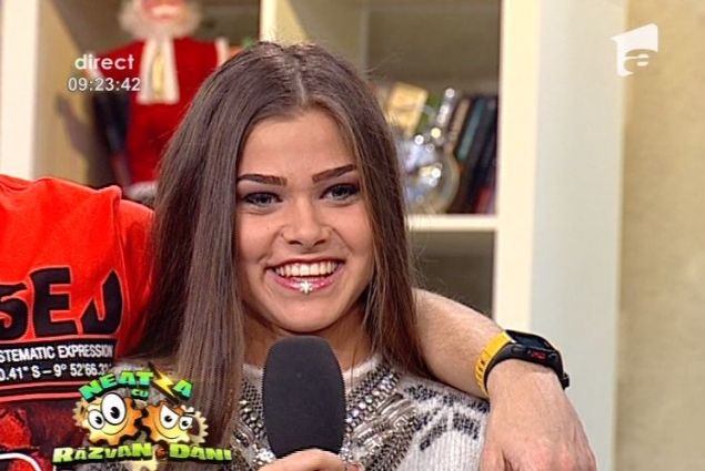 Sigură pe ea, fata a venit la "Neaţa" ca să-şi promoveze cel mai recent single, "Iarna în doi". Ca să se asorteze mai bine cu tema iernatică a melodiei, Theo a venit "decorată" cu un fulg de nea de plastic pe buze. Cântăreaţa nu a putut, însă, să evite glumele lui Dani Oţil. "Ce ai acolo, un herpes?", a întrebat-o, el, ironic.
