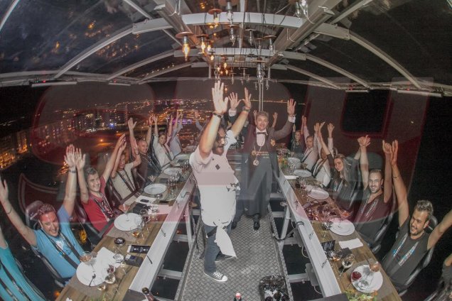 Aflat pe litoral împreună cu familia sa, chef Florin Dumitrescu a jonglat cu platinguri sofisticate la o masă suspendată la 50 de metri deasupra stațiunii. “A fost o super-experiență, îmi doream de mult să am ocazia să ajung la un astfel de 'dinner in the sky', iar provocarea pentru mine a fost sa fac platinguri atrăgătoare pentru turiștii îmbarcați să servească masa în aer”, a declarat încântat chef Dumitrescu.