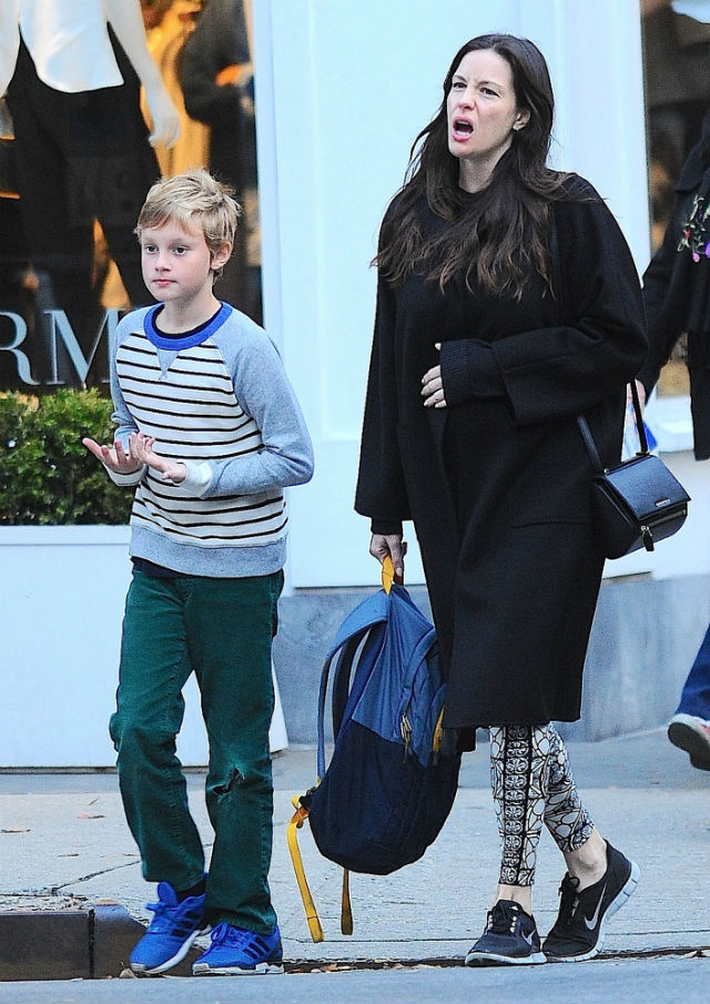 Liv Tyler a fost surprinsă în timp ce se plimba prin New York alături de fiul său. Vedeta nu părea a fi foarte aranjată. Ea a ieşit din casă fără să acorde prea multă atenţie vestimentaţiei sale. Liv era îmbrăcată într-o pereche de colanţi cu imprimeuri alb cu negru, o pereche de adidaşi sport negri şi un palton larg negru pentru a-şi acoperi burtica de gravidă.