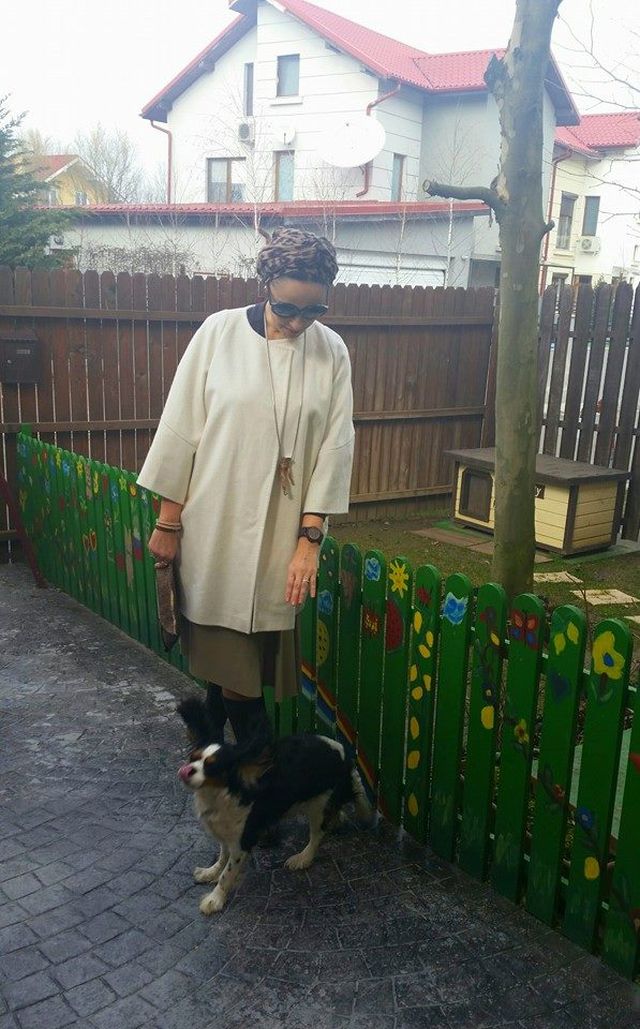 Diva a postat şi o fotografie din curtea casei sale, unde apare alături de simpatica sa căţeluşă.