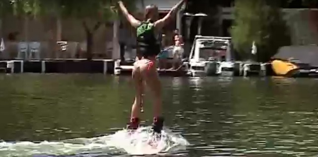 "Mă încolăcesc în ăsta!", striga Ana Mocanu, din mijlocul lacului. De pe "uscat", Loredana râdea şi-i dădea sfaturi. "Trebuie să încordezi picioarele!", îi spunea blonda. Ana Mocanu a căzut de câteva ori în apă încercând să se ridice în picioare. Frumoasei asistente nu i-a luat mult, însă, să înveţe tehnica acestui sport. "Hai că am prins şmecheria, dă-mă!", i-a spus ea instructorului. La un moment dat, a căzut din nou în apă şi, de data asta, s-a lovit. "Auu, ce mă doare, mamăăă! Doamne, Dumnezeule!", a ţipat ea. "Dar eu iubesc sporturile extreme! M-aş arunca de pe bloc în lac!", a adăugat frumoasa Ana.