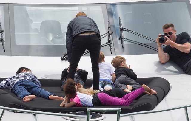 Cei doi soţi au plecat pe un iaht de lux împreună cu cei mici şi par că se distrează la maximum. În largul mării, Brad Pitt le face poze celor şase copii şi soţiei sale, toţi zâmbind cu gura până la urechi. Mai mult, unul din băieţi se strâmbă la tatăl său, în timp ce fetele se amuză. Se pare că cele două staruri au vrut să petreacă departe de ochii curioşilor şi au plecat tocmai în Australia.