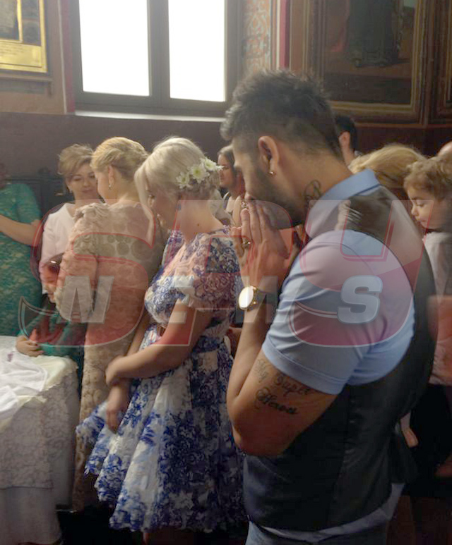Până la începerea ceremoniei religioase, artistul a ieşit în curte şi a ţinut legătura telefonic cu mai mulţi invitaţi, cărora le-a dat repedere clare pentru localizarea lăcaşului sfânt. Iar slujba de creştinare a fetiţei s-a desfăşurat ca la carte şi a fost una extrem de emoţionantă pentru părinţii Mayei.