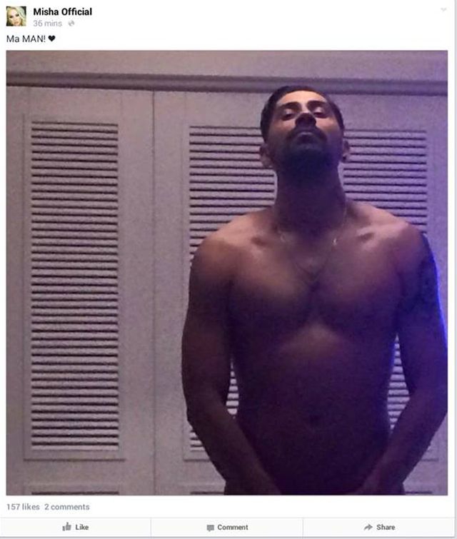 La bustul gol, în faţa unei oglinzi, aflat în toaletă, artistul este pozat chiar în această ipostază. Connect-R pare să nu aibă nici în jos haine, însă în fotografie nu se vede exact. Misha e mândră de soţul ei, motiv pentru ca a postat imaginea pe Facebook şi a scris în dreptul ei "Bărbatul meu".