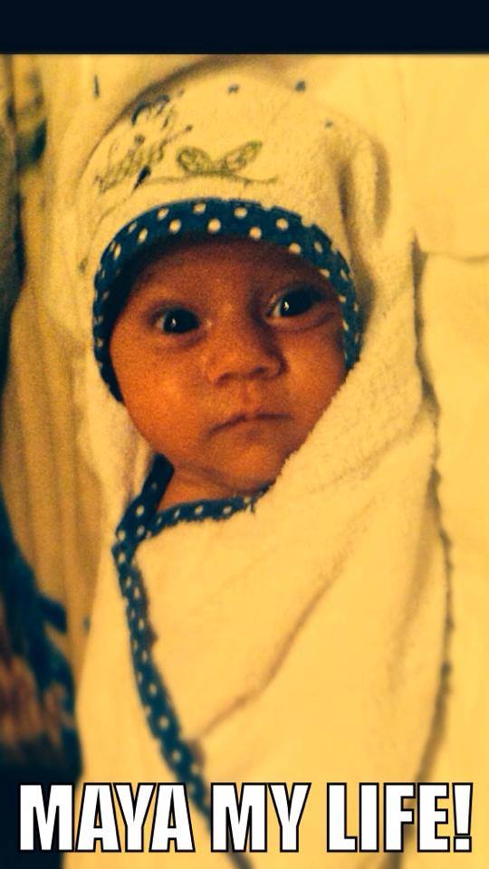 Micuţa Maya e îmbrăcată într-un halat de baie pufos şi priveşte mirată către cel care i-a făcut poza. "Maya, viaţa mea" este mesajul scris pe această fotografie. Misha a primit o mulţime de complimente de la fani, pe contul de socializare.