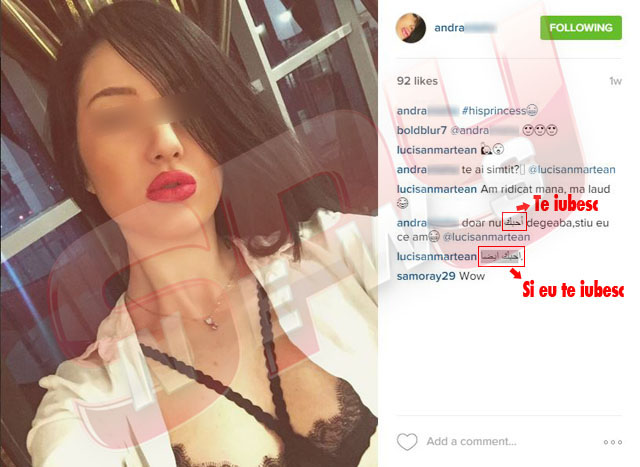 Mai exact, la aproape fiecare postare a tinerei, Lucian Sânmărtean se grăbește să aprecieze fotografia șți, evident, să comenteze ceva, cu atât mai mult cu cât ea pare să îl provoace. Astfel, printre postările cele mai siropoase sunt cele în care frumoasa Andra mărturisește prietenilor ei virtuali că se gândește doar la o persoană ale cărui inițiale sunt, întâmplător, LS și totodată îi urează ”mult noroc”, iar fotbalistul replică imediat, trimițându-i inimioare peste inimioare.