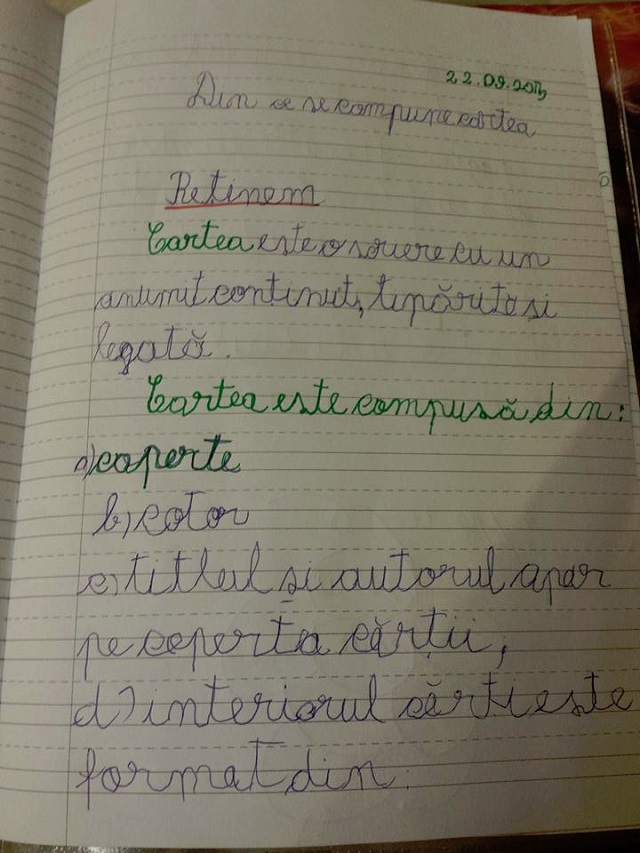 Prezentatoarea emisiunii "Necenzurat", de la Antena Stars, a postat două fotografii pe facebook în care compară caietul fiului său din perioada în care era în şcoala privată, cu caietul pe care-l are acum, la Şcoala nr. 150. "În prima poză vedeţi cum arată una din ultimele zile de la şcoala privată de care ne-am despărţit. În a doua poză vedeţi ce am făcut în prima noastră zi, la Şcoala Gimnazială 150. E vreo diferenţă? Ce ziceţi?", a spus Bahmu.