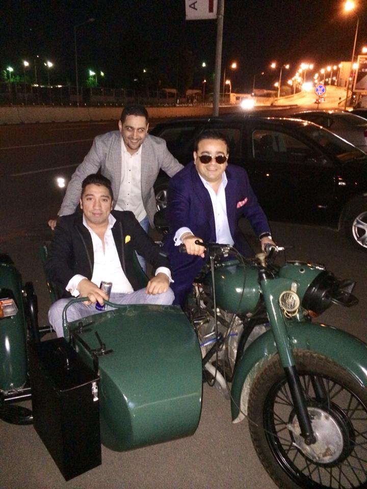 Manelistul s-a urcat pe o motocicletă cu ataş, alături de prietenii lui, cu care s-a şi fotografiat, de altfel. "Mai am una şi-am plecat", a fost descrierea fotografiei.