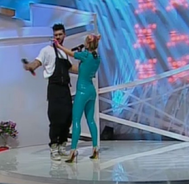 VIDEO / Mihai Morar, poziţii indecente în emisiune! I-a pus mâna pe fund Corinei Bud