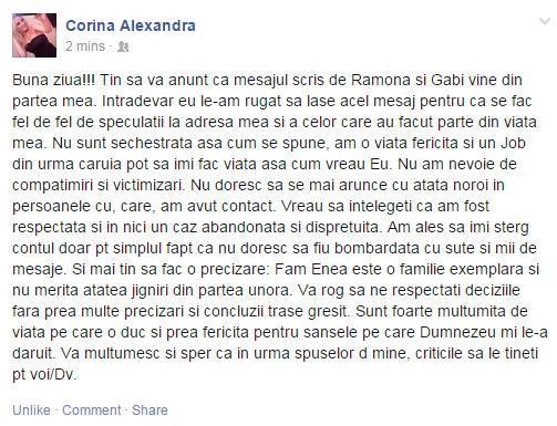 Corina şi Traian, după câteva luni în care s-au iubit cu foc, s-au decis să se despartă definitiv. Cu toate astea, Corina susţine că este bine şi îi mulţumeşte lui Dumnezeu pentru viaţa ei de acum.