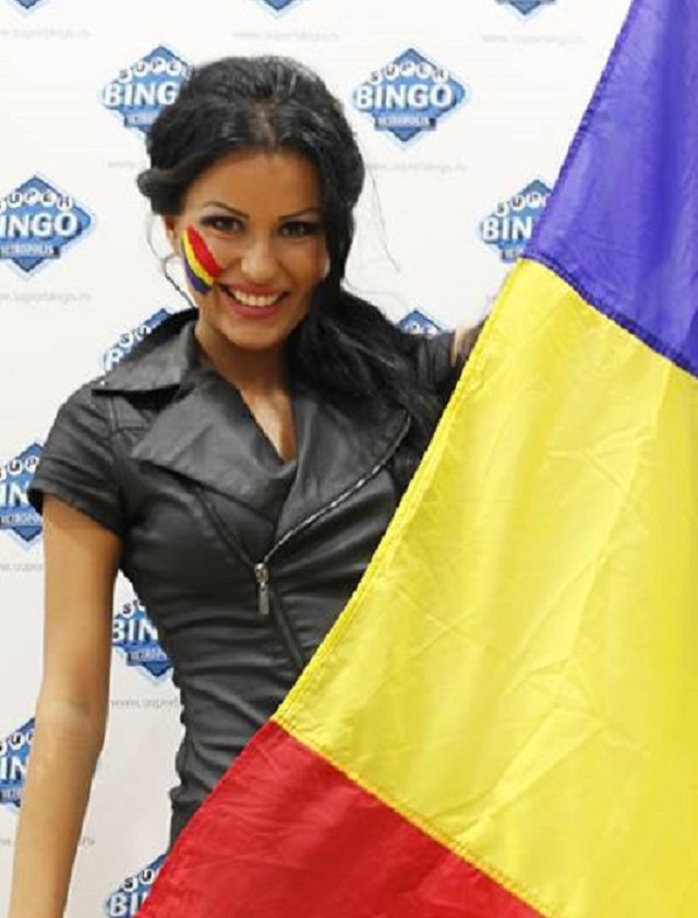 Semn că este alături de echipa naţională, sexoasa brunetă şi-a desenat tricolorul pe faţă şi ţine în mână drapelul României. Alături de Mihai Mitoşeru, Cruduţa strigă în gura mare: "Hai România" şi speră că ţara noastră se va califica la Cupa Mondială. Probabil că vedeta va urmări meciul din această seară alături de iubitul ei, Mihai Costea.