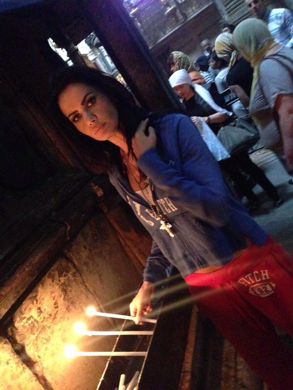 Cu lumânarea aprinsă şi la buricul gol! Oana Zăvoranu şochează din nou la Mormântul Sfânt!