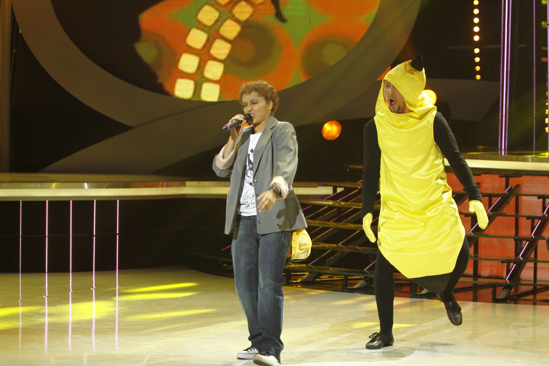 Elena Ionescu, solista trupei Mandinga, se transformă în Mihai Trăistariu și cântă piesa acestuia, “Banana”, sâmbătă, 8 martie, de la ora 20.30, la "Te cunosc de undeva!" Peruca acesteia a fost confecționată special de către Gabriela Crețan și echipa ei care realizează machiajul și coafura pentru fiecare transformare de la "Te cunosc de undeva!" "Am făcut peruca dintr-o chelie, la care am atașat păr natural, pe care l-am coafat", ne-a explicat Gabi. Rezultatul, îl veți vedea în show-ul de sâmbătă.