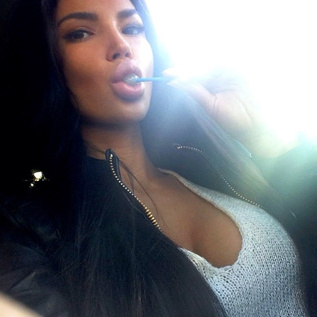 Sexoasa brunetă a publicat o poză pe contul de Instagram, în care şi-a scos decolteul la înaintare şi şi-a băgat o acadea în gură pentru un efect garantat. Bomboana între buzele ei mari şi apetisante fac deliciul bărbaţilor.