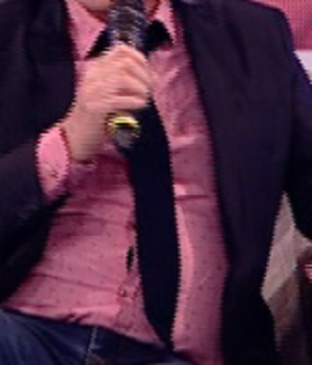 Mihai Constantinescu şi-a făcut apariţia la Antena Stars îmbrăcat cu un sacou închis la culoare, o pereche de blugi, o cămaşă de culoare roz şi o cravată tot închisă ca nuanţă. Momentul în care s-a aşezat pe canapea i s-a desfăcut o parte a cămăşii, nasturii cedând presiunii burticii.