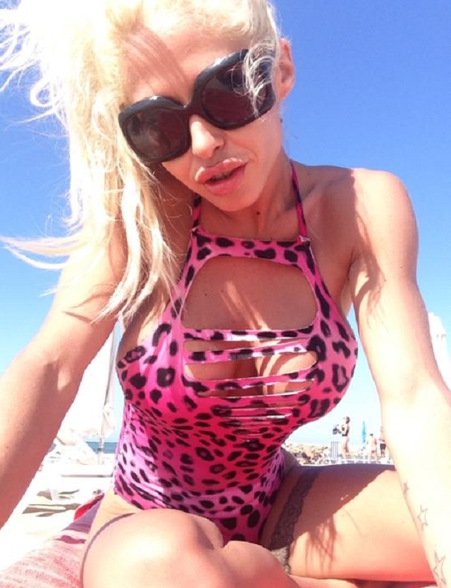 Blonda a îmbrăcat un costum de baie roz, format dintr-o singură piesă şi s-a pozat sexy sub razele fierbinţi ale soarelui. Vârsta îşi spune cuvântul în cazul Evei, iar pielea, a cărei elasticitate s-a pierdut, îi atârna, nu tocmai plăcut. Chiar şi aşa, prietenii virtuali i-au lăsat like-uri, fiind hipnotizaţi de decolteul ei generos.